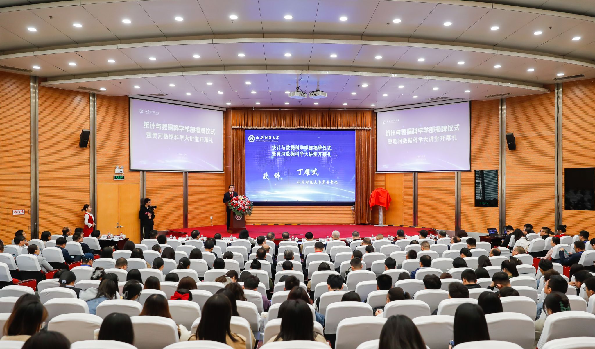 统计与数据科学学部揭牌仪式暨黄河数据科学大讲堂开幕礼在国际学术交流中心报告厅隆重举行。来自北京大学、中国人民大学、江西财经大学等院校的国内统计学界知名专家学者,山西省教育厅、山西省统计局、国家统计局山西调查总队的领导,以及校内师生380余人参加了揭牌仪式。