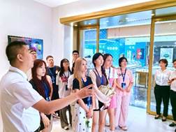 师生在党委书记张锐和项目负责人王涛老师的带领下走进可比黄金珠宝贸易中心,开启了一段企业参观与交流的旅程。在贸易中心的热烈欢迎下,师生们在楼前合影,记录下这一难忘时刻。