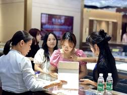 企业员工向师生介绍珠宝品牌