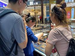 紧接着,大家参观了一层的展厅与品牌运营中心,深入探索了周大福、萃华等珠宝品牌的发展历史与深刻内涵,对品牌运营和产品特色有了更为直观的感受。