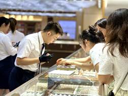 在二层晋豪臻品的展区,师生们亲身体验了珠宝首饰的精致与华美,对首饰的工艺和市场销售流程有了深刻的认识。而四层万思达的办公区域参观,则让他们对珠宝零售的内部运作和管理有了更进一步的洞察。